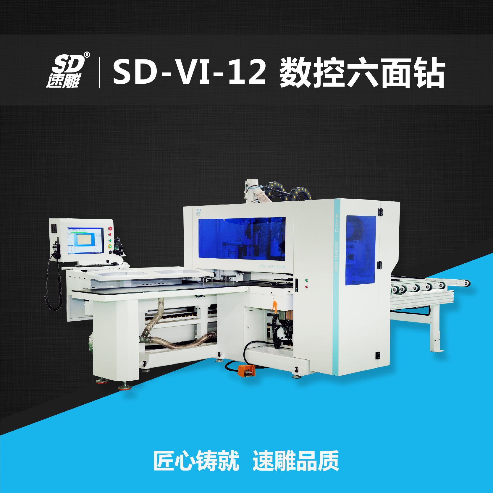 數(shù)控六面鉆改變了傳統(tǒng)的工件固定加工模式,采用自動(dòng)夾鉗固定并移動(dòng)板材,擺脫工件固定對(duì)吸附的依賴,夾持更穩(wěn)定。加工過程一次性導(dǎo)入加工數(shù)據(jù)后,掃碼完成加工。無需翻面,無需二次加工,一次完成六面打孔,加工結(jié)束后,自動(dòng)出料,人工分揀,工作效率高。相比于PTP來說,實(shí)現(xiàn)了小板精確打的功能,而且極大減少了占地空間,使用功率降低,節(jié)省用電量,能夠?yàn)閺S里節(jié)省很大一部分人工成本開支,因此備受家具廠的青睞。