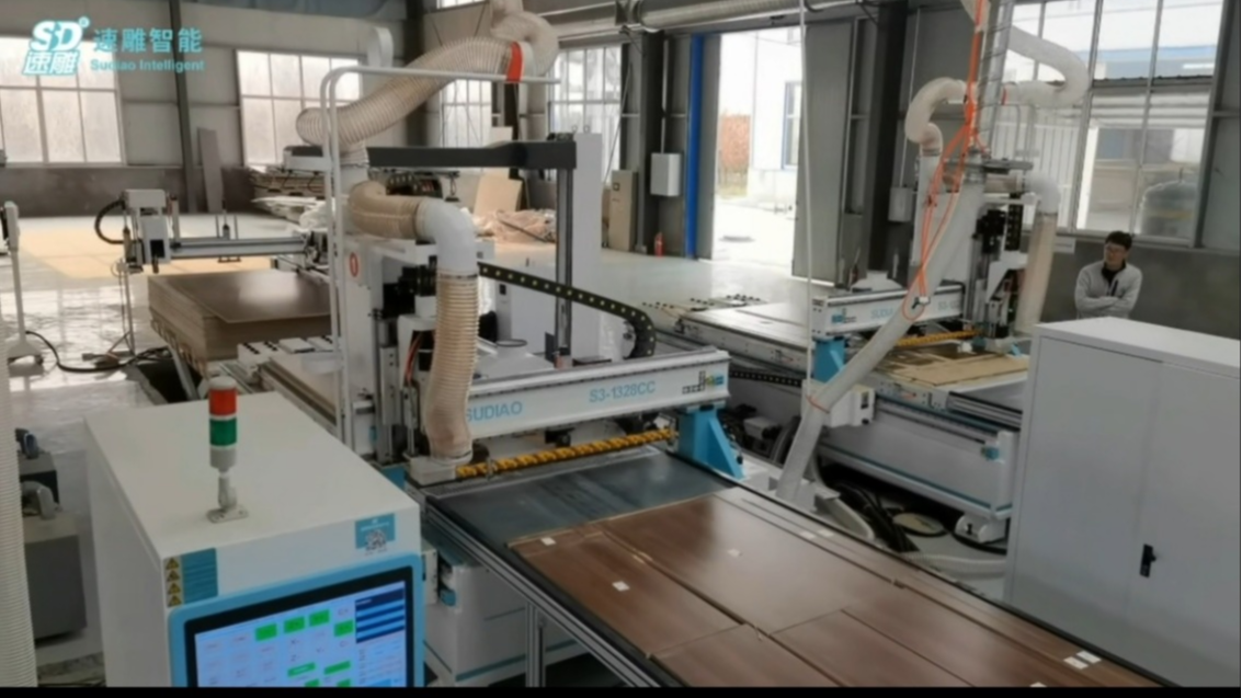 兩臺(tái)開(kāi)料機(jī)一臺(tái)貼標(biāo)機(jī),同時(shí)工作,不僅僅提高了生產(chǎn)效率,更加減少了人工的投入,同樣的智能無(wú)人操作,速雕智能設(shè)備更加具備生產(chǎn)效率以及產(chǎn)品保障,價(jià)格優(yōu)惠!